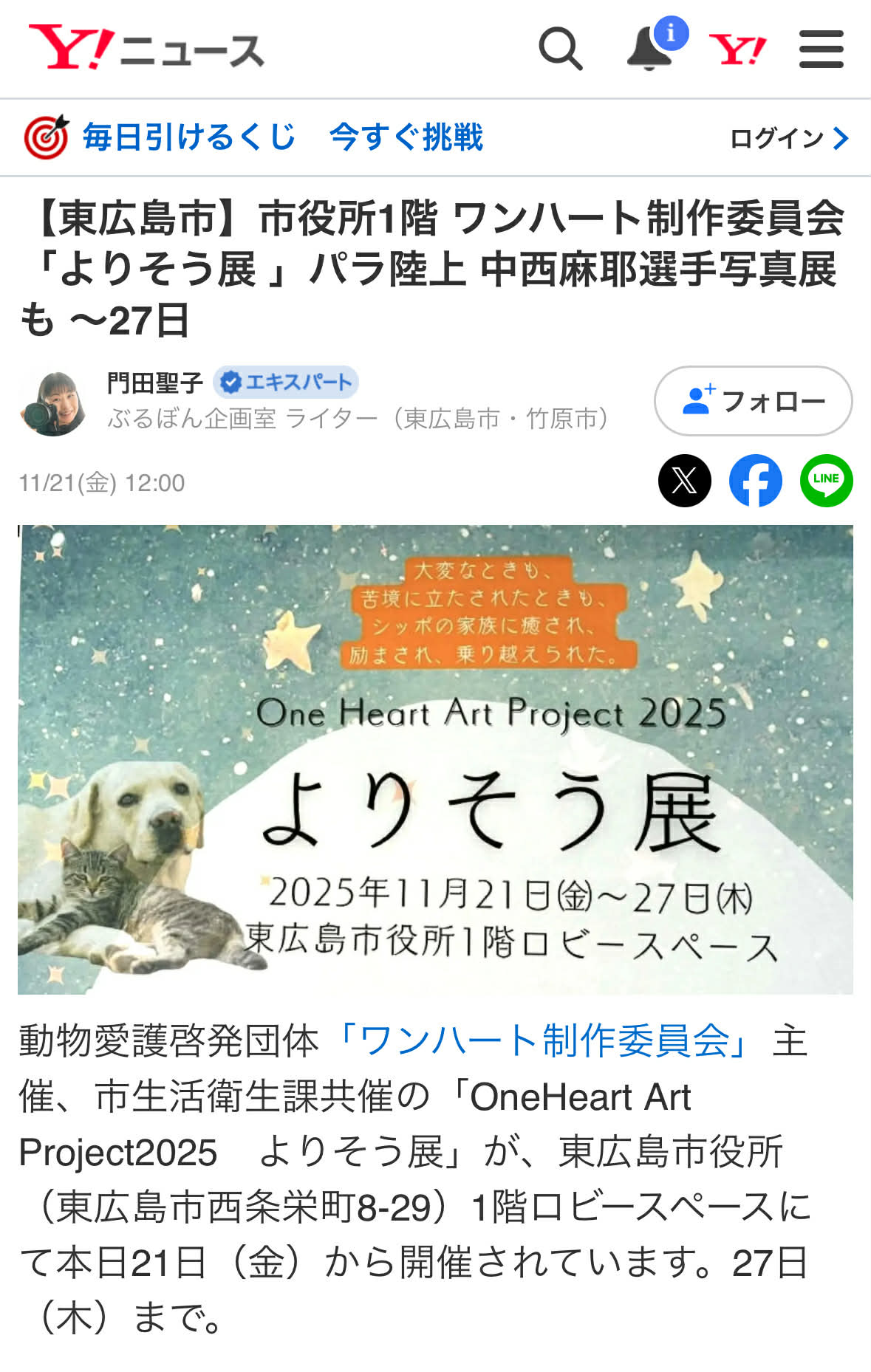 【東広島市】市役所1階 ワンハート制作委員会「よりそう展 」パラ陸上 中西麻耶選手写真展も ~27日