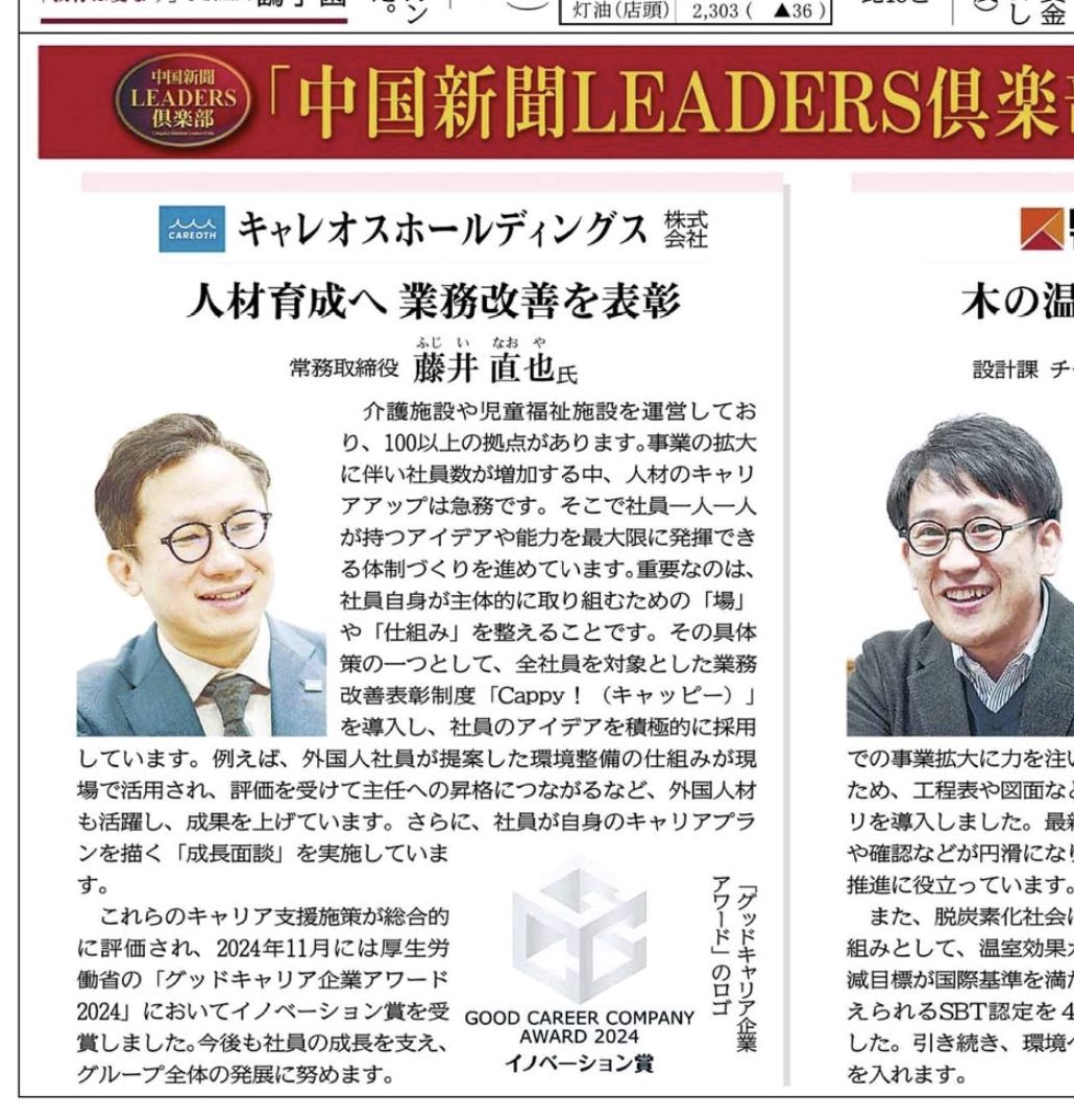キャレオスホールディングスさまお飾りの経営者ではなく、現場を経験した方々による経営は素晴らしいと改めて働きたい海外人材との連携など意義深いお話をありがとうございました!受賞おめでとうございます