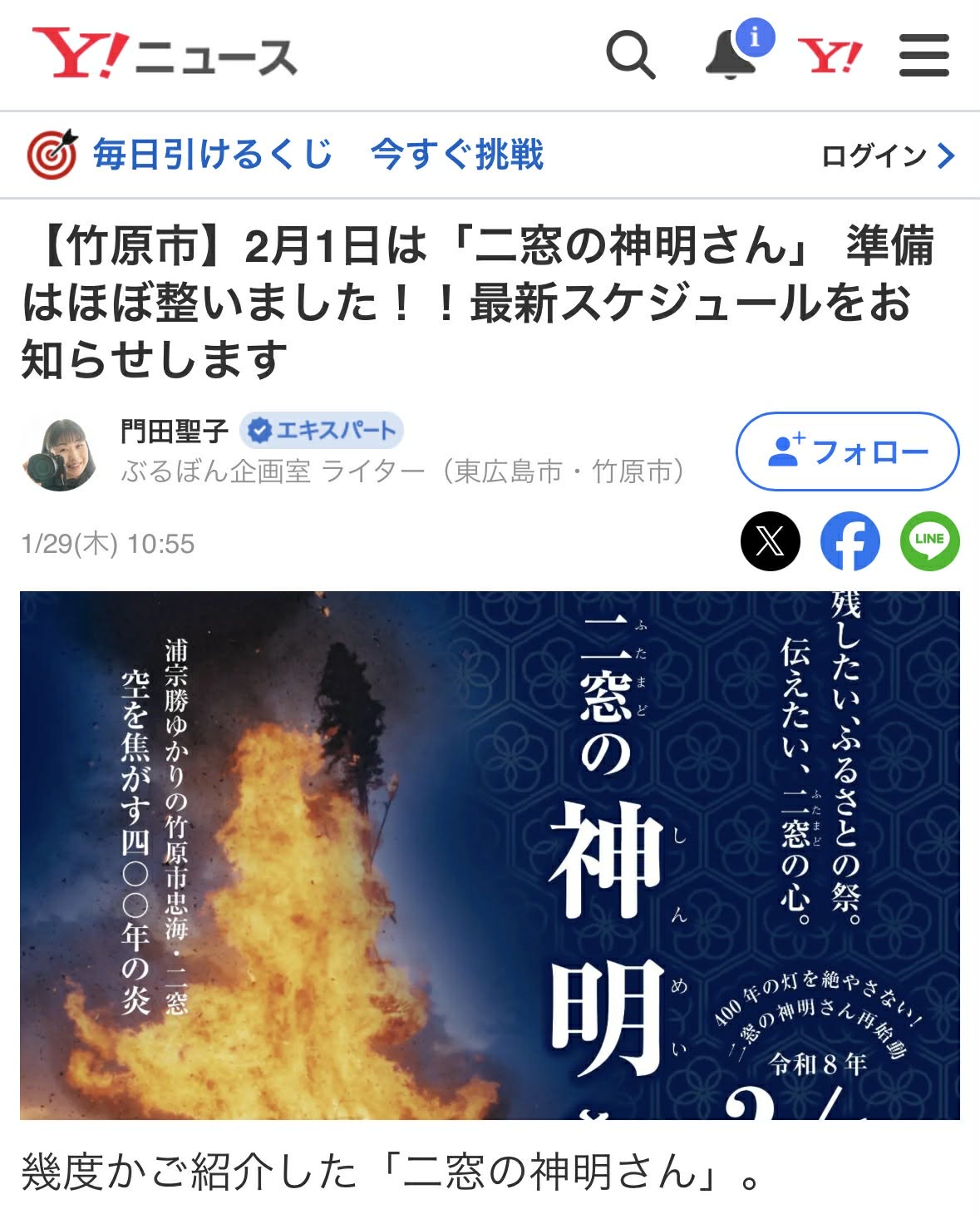 【竹原市】2月1日は「二窓の神明さん」 準備はほぼ整いました!!最新スケジュールをお知らせします(門田聖子) – エキスパート – Yahoo!ニュース