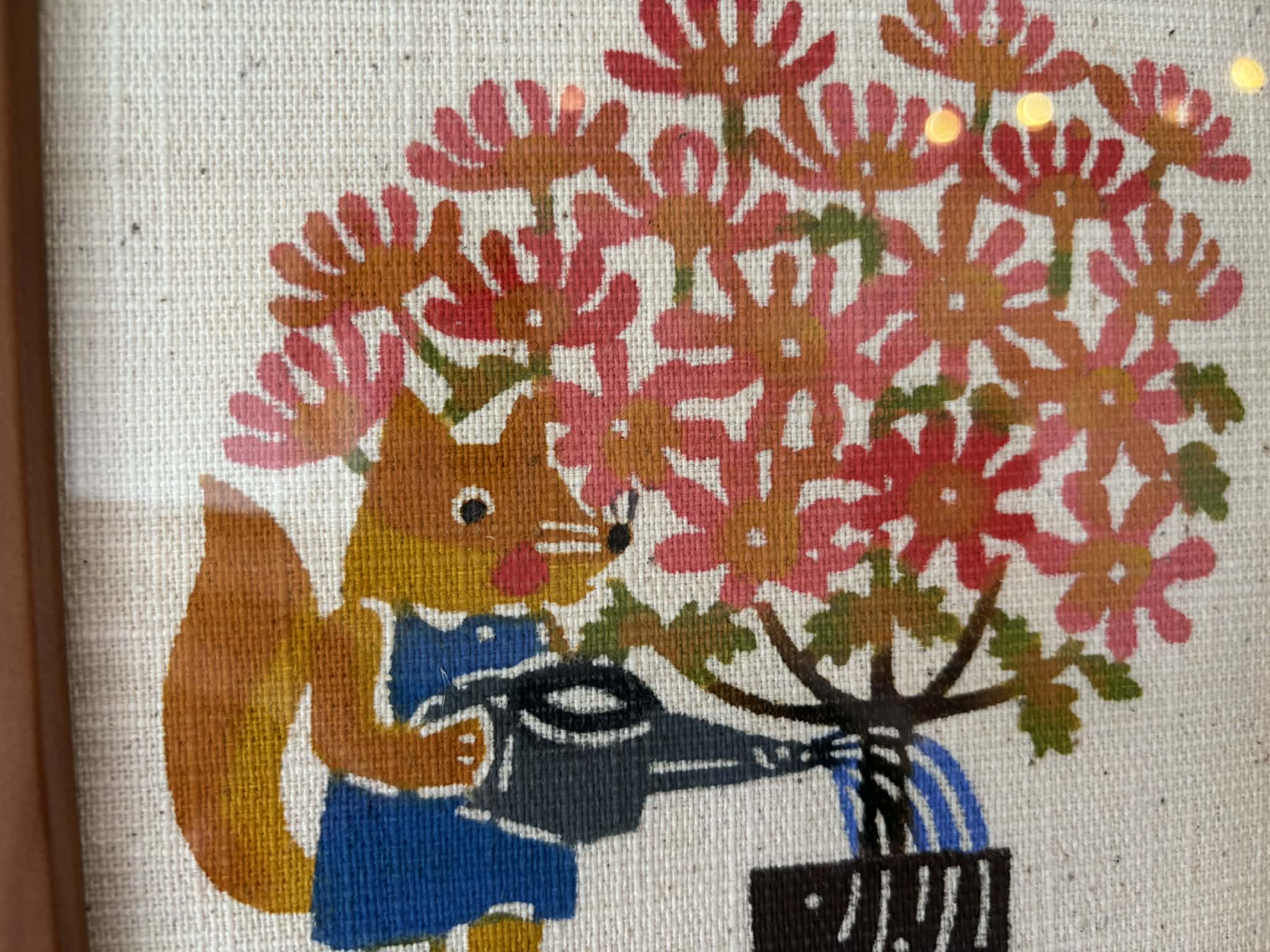 2階でゆっくり型染作品を見ながら、アートなひとときはいかがでしょう