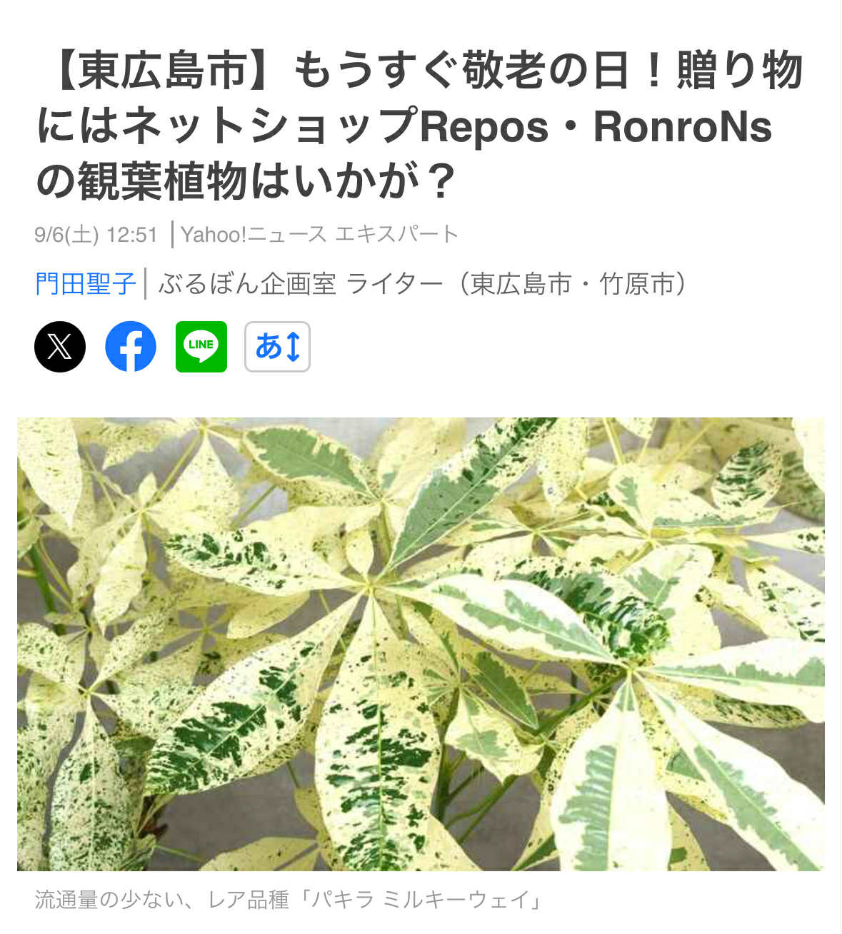 【東広島市】もうすぐ敬老の日!贈り物にはネットショップRepos・RonroNsの観葉植物はいかが?