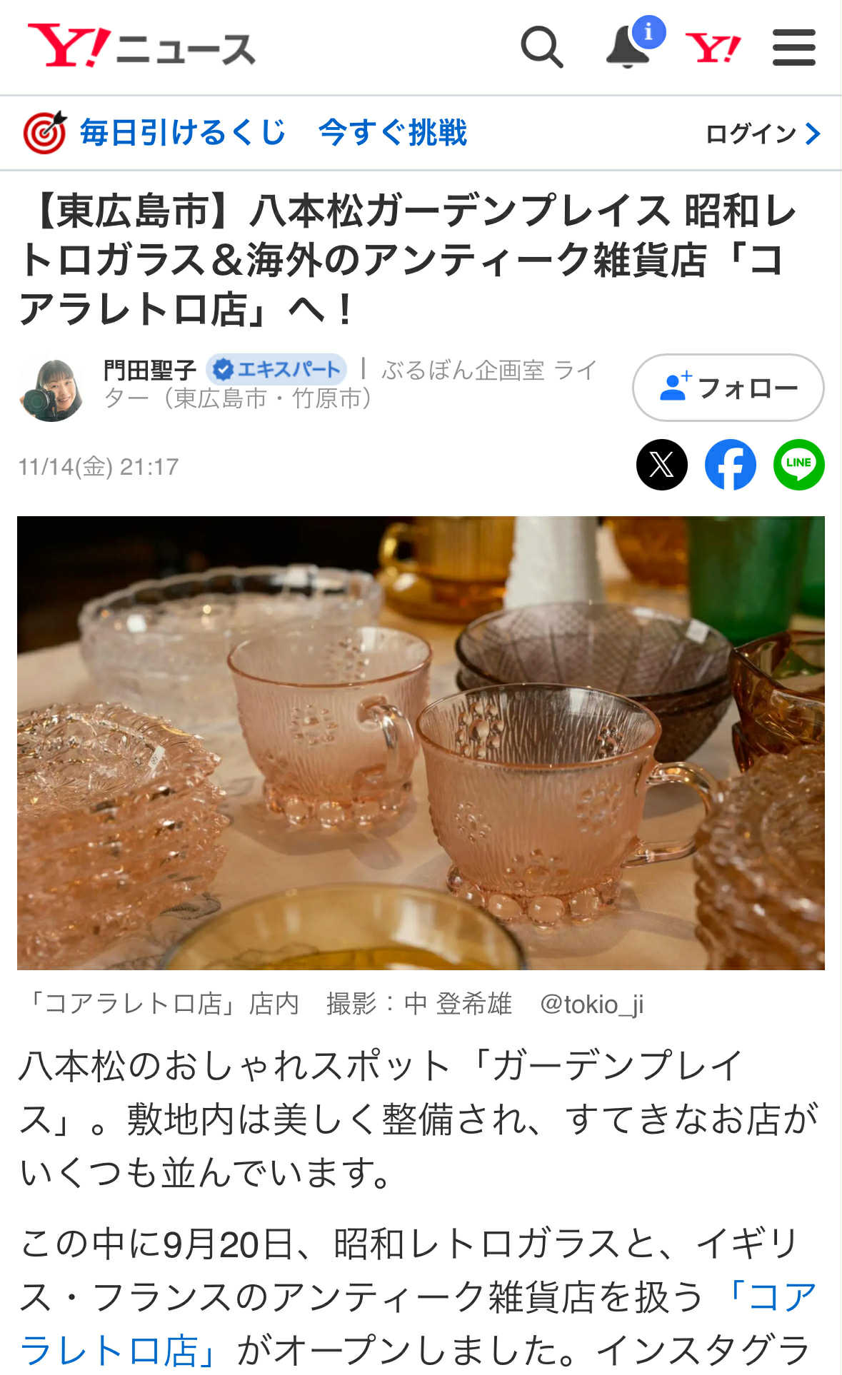 【東広島市】八本松ガーデンプレイス 昭和レトロガラス&海外のアンティーク雑貨店「コアラレトロ店」へ!(門田聖子) – エキスパート – Yahoo!ニュース