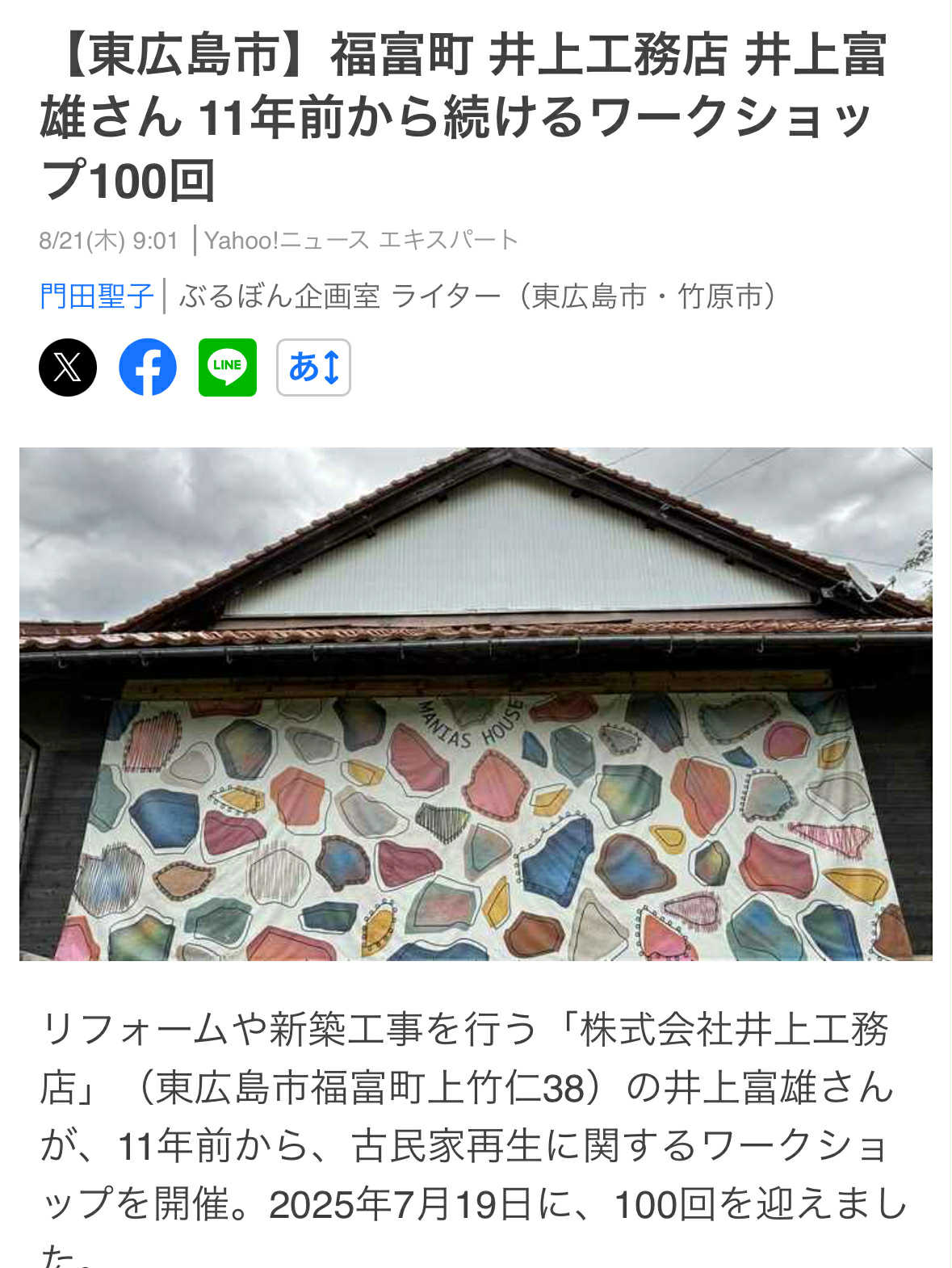 【東広島市】福富町 井上工務店 井上富雄さん 11年前から続けるワークショップ100回