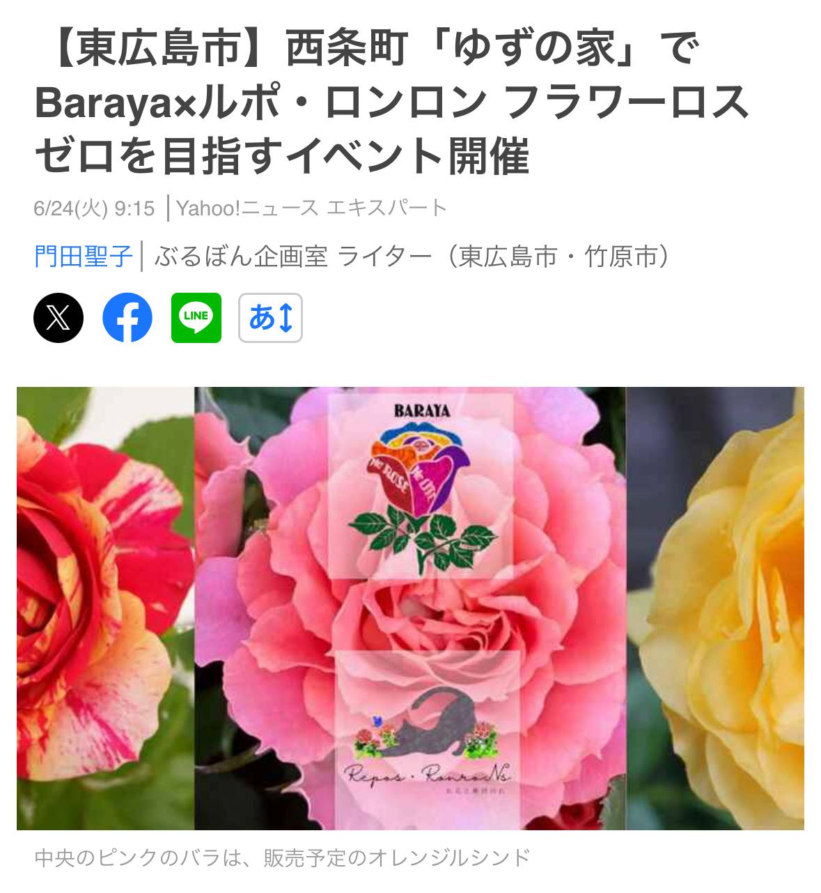 【東広島市】西条町「ゆずの家」でBaraya×ルポ・ロンロン フラワーロス・ゼロを目指すイベント開催