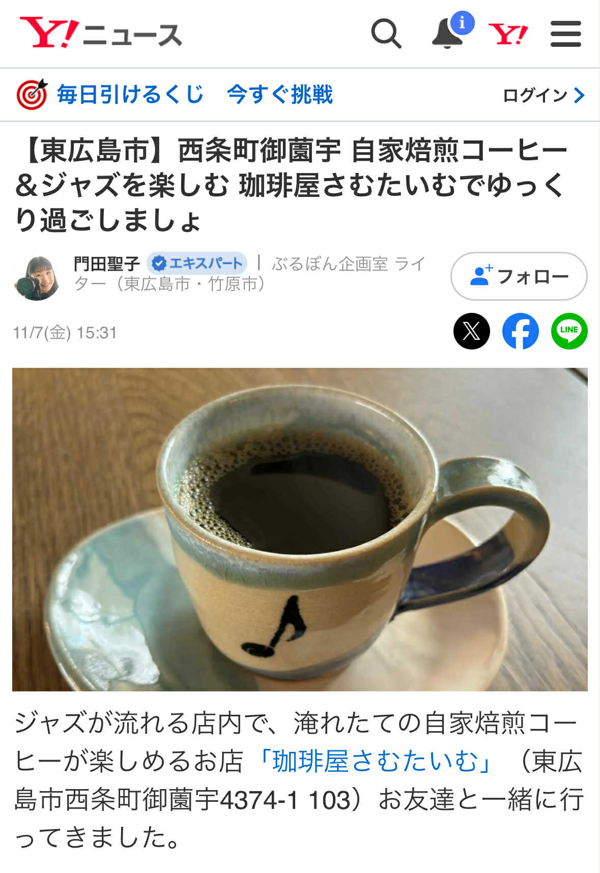 【東広島市】西条町御薗宇 自家焙煎コーヒー&ジャズを楽しむ 珈琲屋さむたいむでゆっくり過ごしましょ(門田聖子) – エキスパート – Yahoo!ニュース