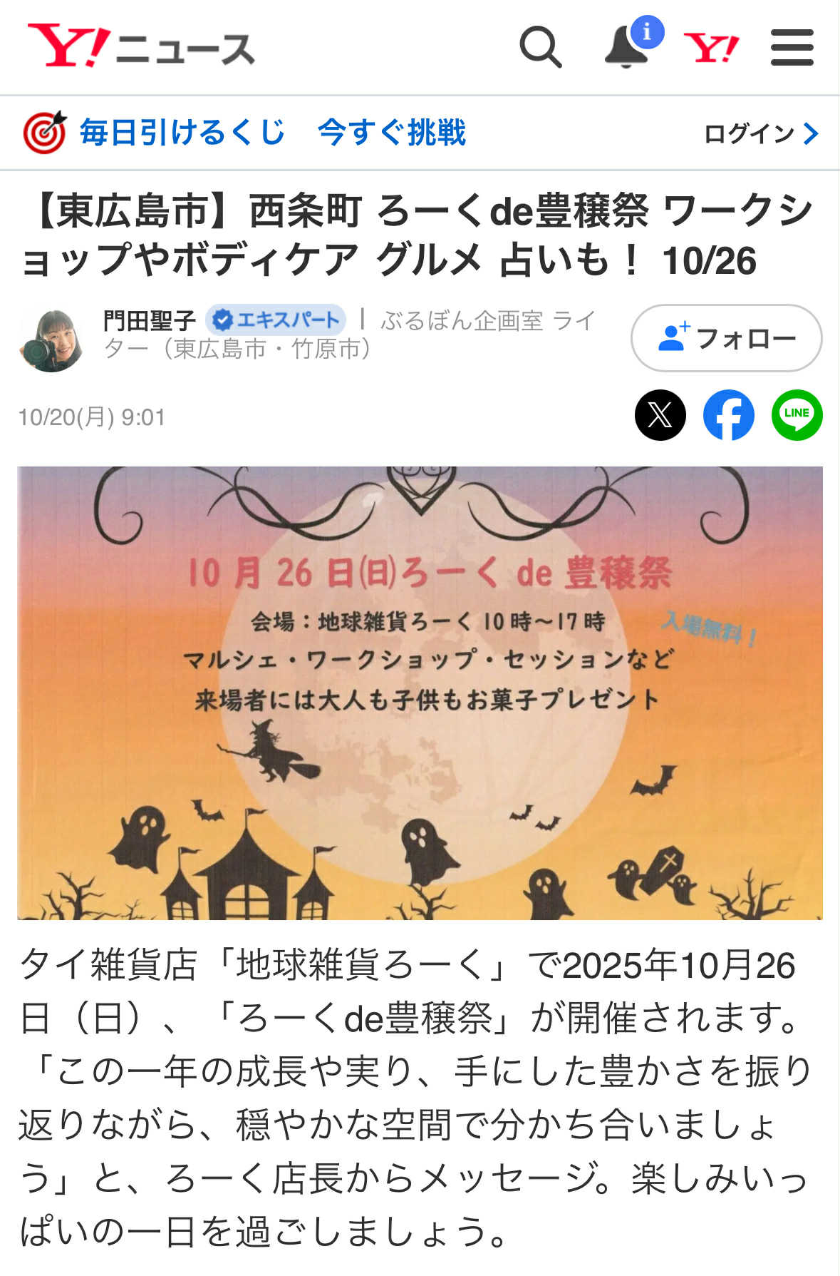 【東広島市】西条町 ろーくde豊穣祭 ワークショップやボディケア グルメ 占いも! 10/26(門田聖子) – エキスパート – Yahoo!ニュース