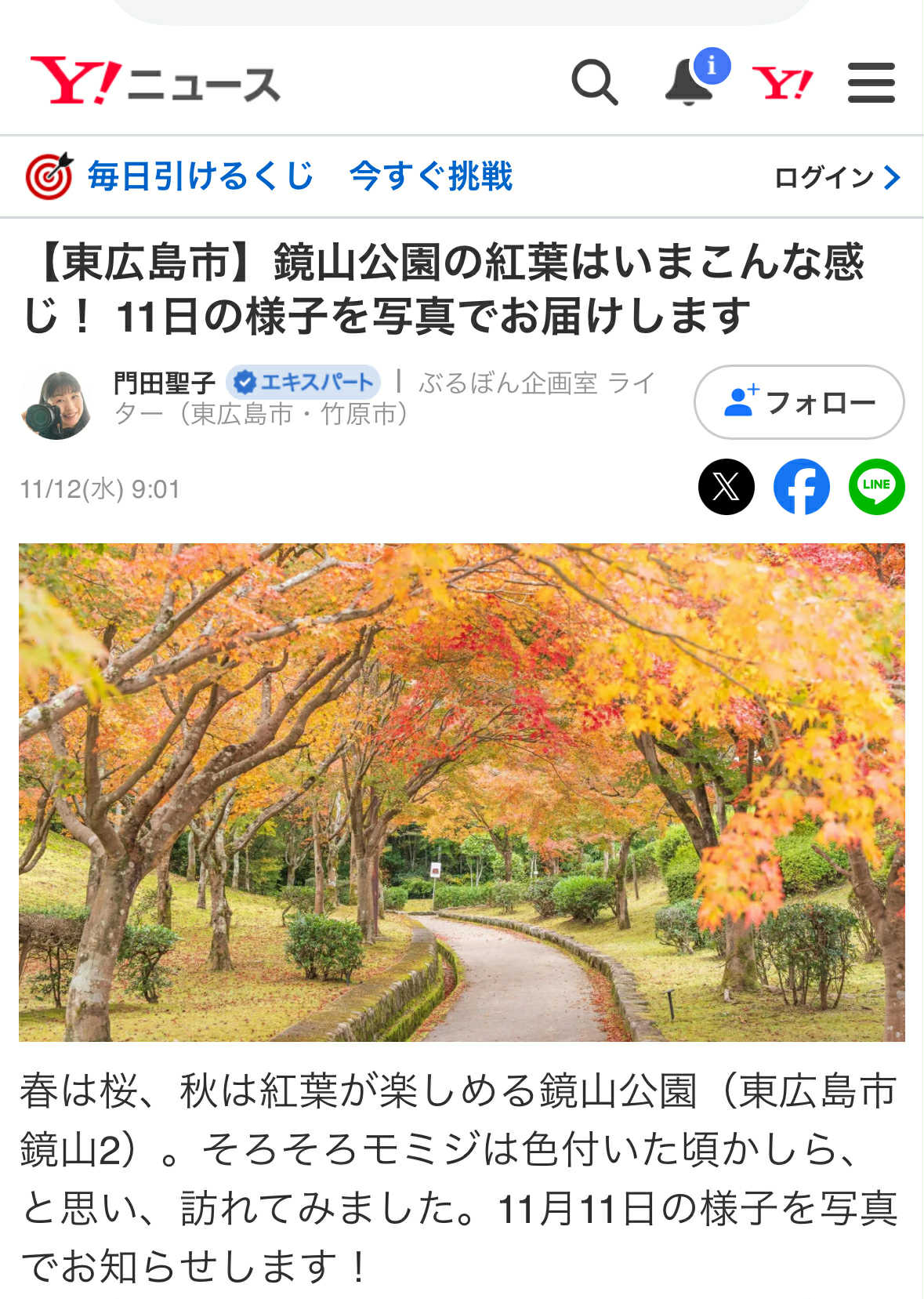 【東広島市】鏡山公園の紅葉はいまこんな感じ! 11日の様子を写真でお届けします(門田聖子) – エキスパート – Yahoo!ニュース