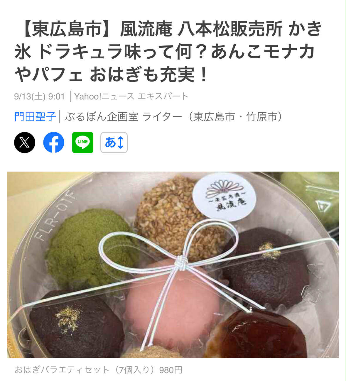 【東広島市】風流庵 八本松販売所 かき氷 ドラキュラ味って何?あんこモナカやパフェ おはぎも充実!