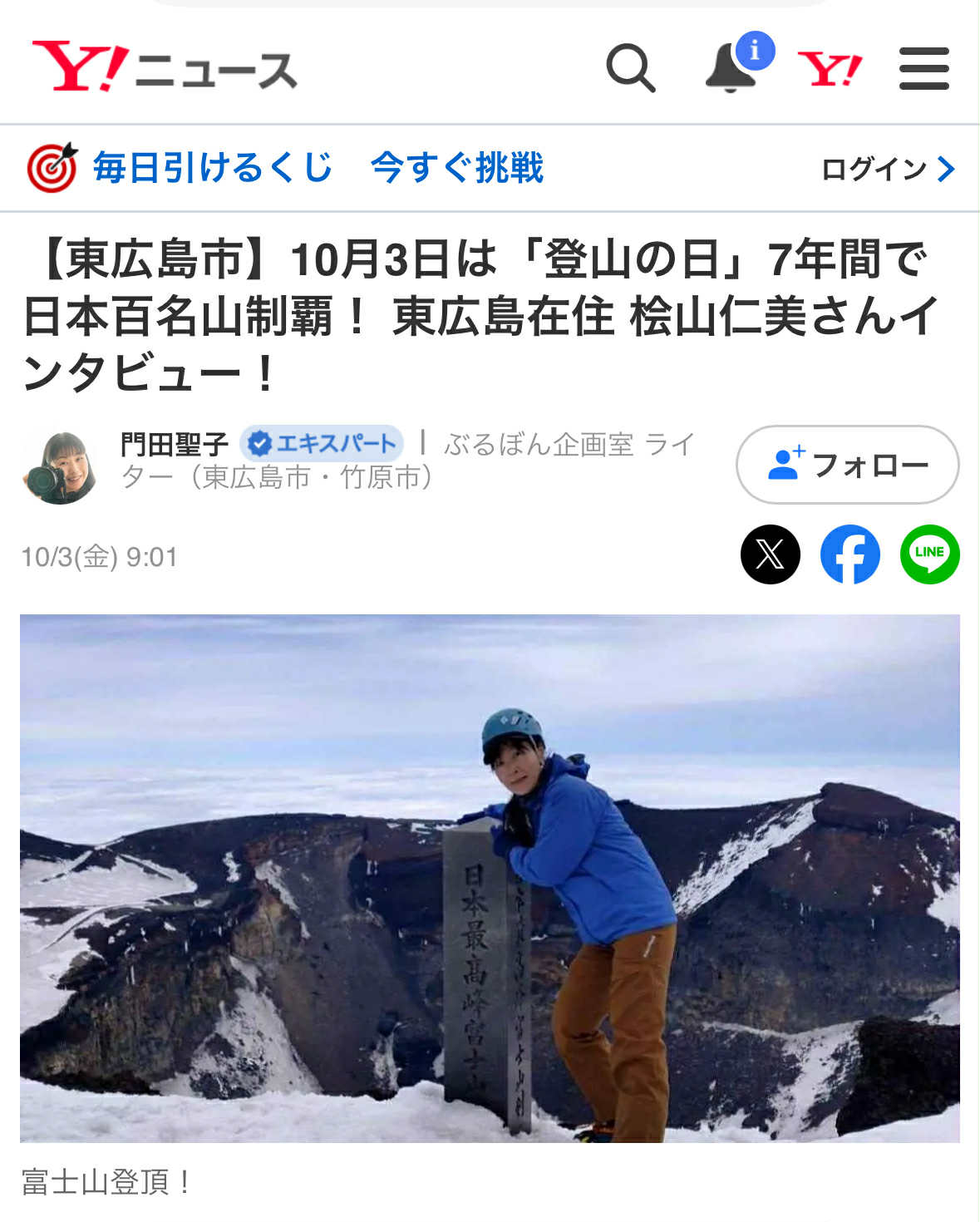 【東広島市】10月3日は「登山の日」7年間で日本百名山制覇! 東広島在住 桧山仁美さんインタビュー!