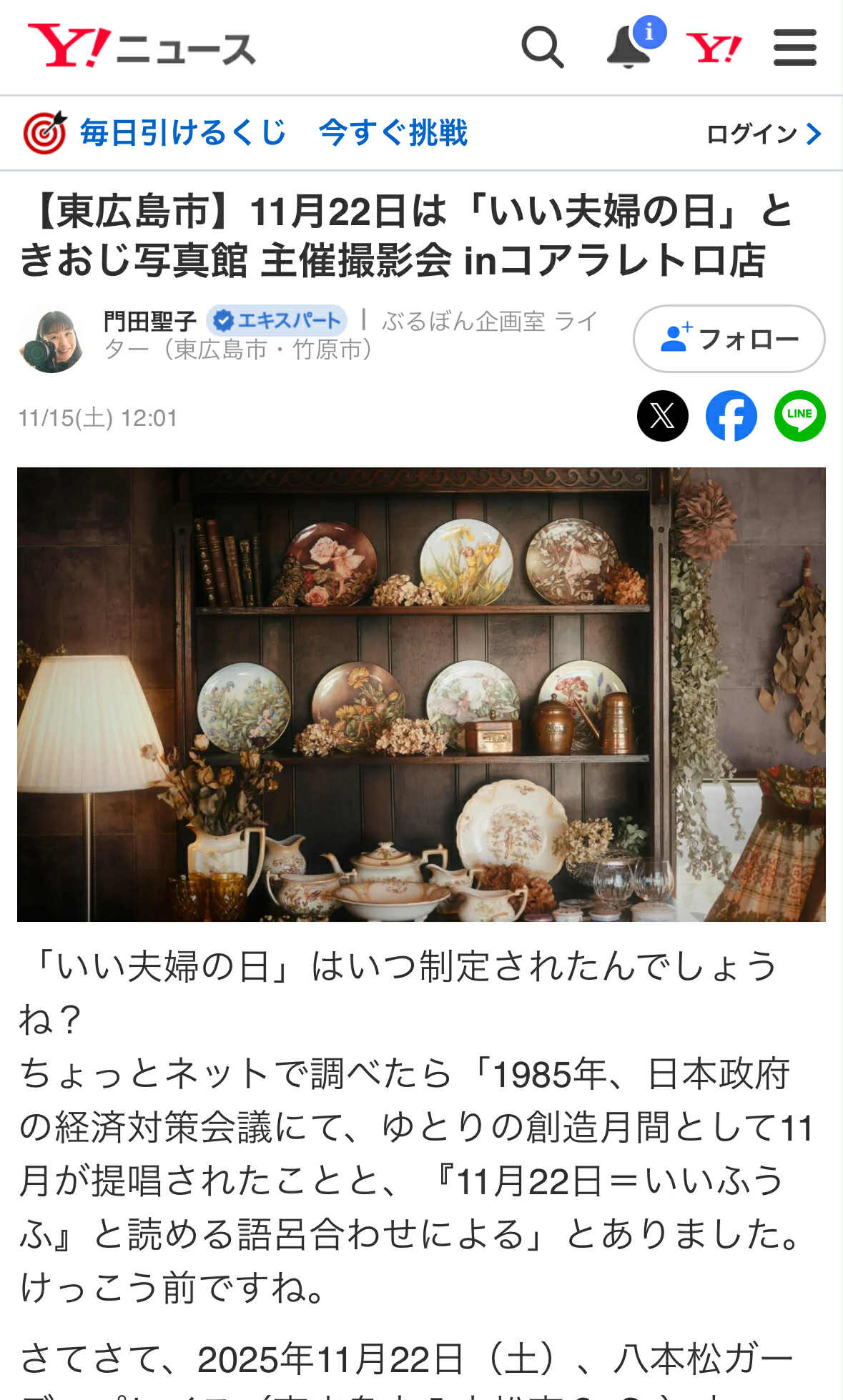 【東広島市】11月22日は「いい夫婦の日」ときおじ写真館 主催撮影会 inコアラレトロ店(門田聖子) – エキスパート – Yahoo!ニュース