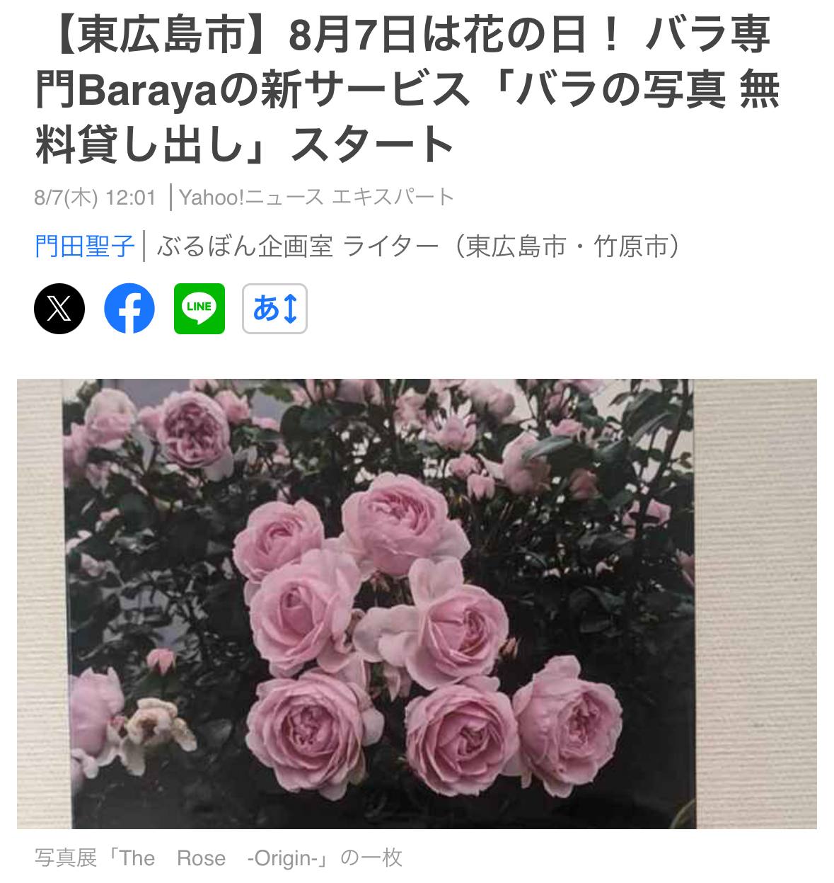 【東広島市】8月7日は花の日! バラ専門Barayaの新サービス「バラの写真 無料貸し出し」スタート