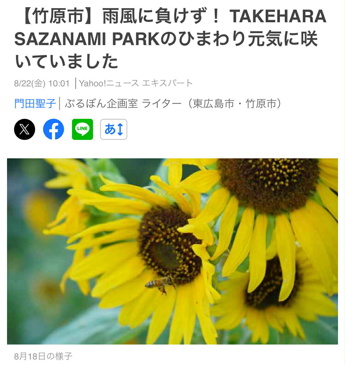 【竹原市】雨風に負けず! TAKEHARA SAZANAMI PARKのひまわり元気に咲いていました